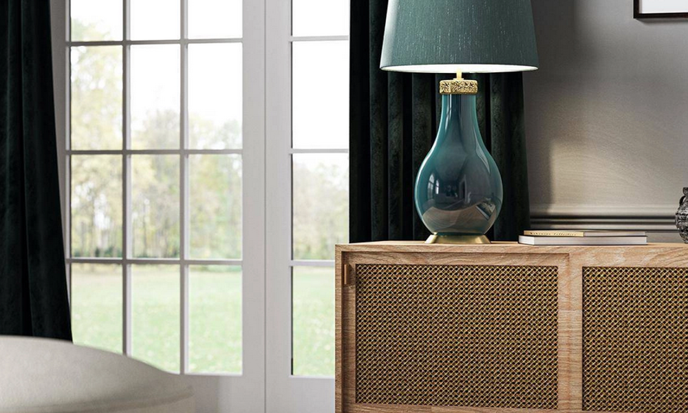 Szmaragdowe lampy stołowe i stojące: elegancja do salonu i gabinetu